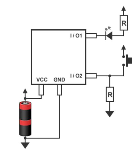 为什么很多电器设备都要使用MCU呢?让我们用一个点亮LED的电路为例,来说明。如下图所示,不使用MCU的电路是一个由LED,开关和电阻构成的简