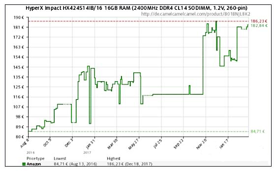SSD刚刚开始有点供过于求的迹象,三星的工厂上周由于意外停电导致6千片晶圆报废,目前看来降价的美梦是破灭了。其实在2017年,涨价势头更猛的其实是内存,且到目前为止,内存价格依然没