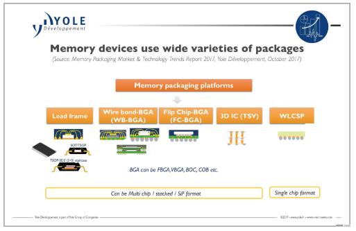 存储器芯片的封装有多种选择,包括从引脚数少、外形小的SOP封装到引脚数多的硅通孔(TSV)等各种封装技术,而这些技术的选择取决于密度、性能