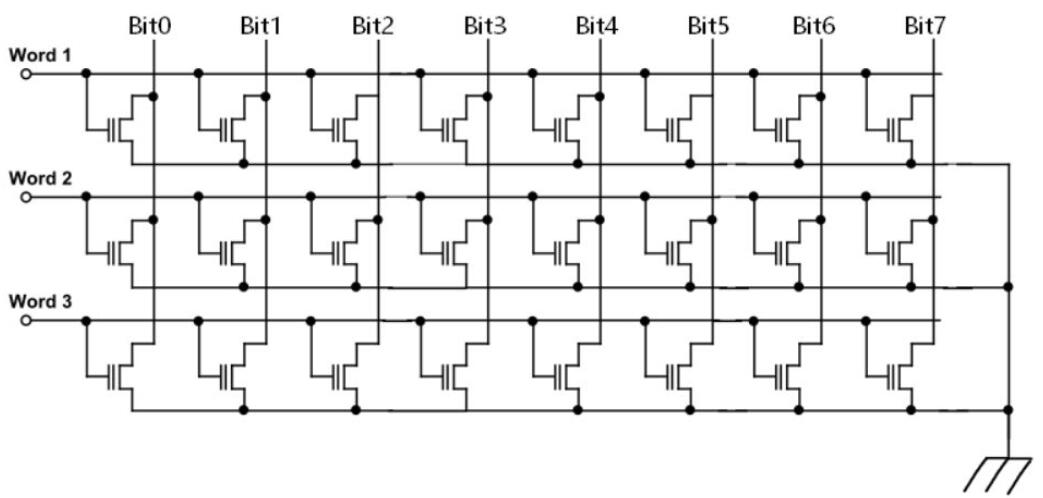(2)基本存储单元的并联结构决定了NOR FLASH具有存储单元可独立寻址且读取效率高的特性,因此适用于code-storage,且程序可以直接在NOR 中运行(即具有RAM的特性)。