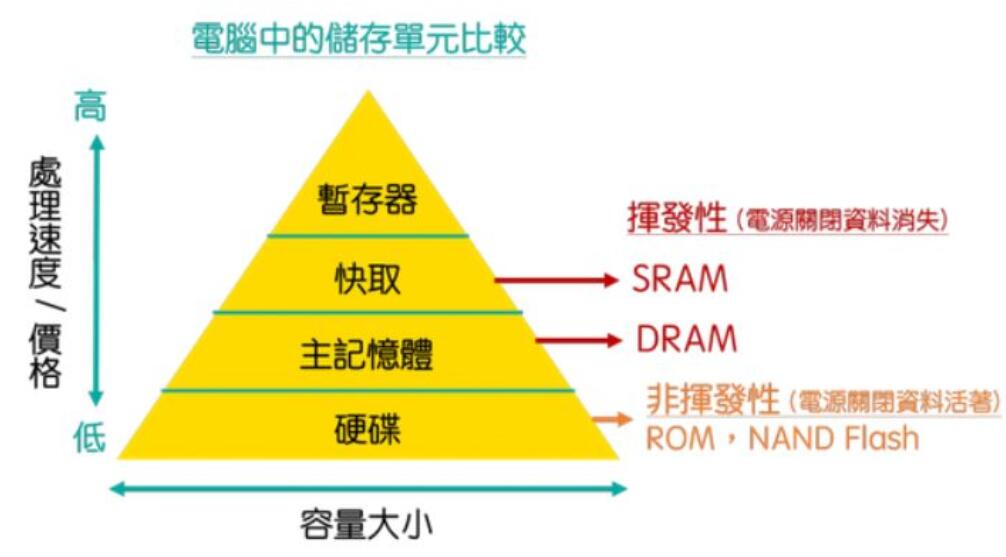 存储器分为易失性存储器和非易失性存储器。易失性存储器分SRAM和DRAM;非易失性存储器以Nor-flash和Nand-flash为典型代表。