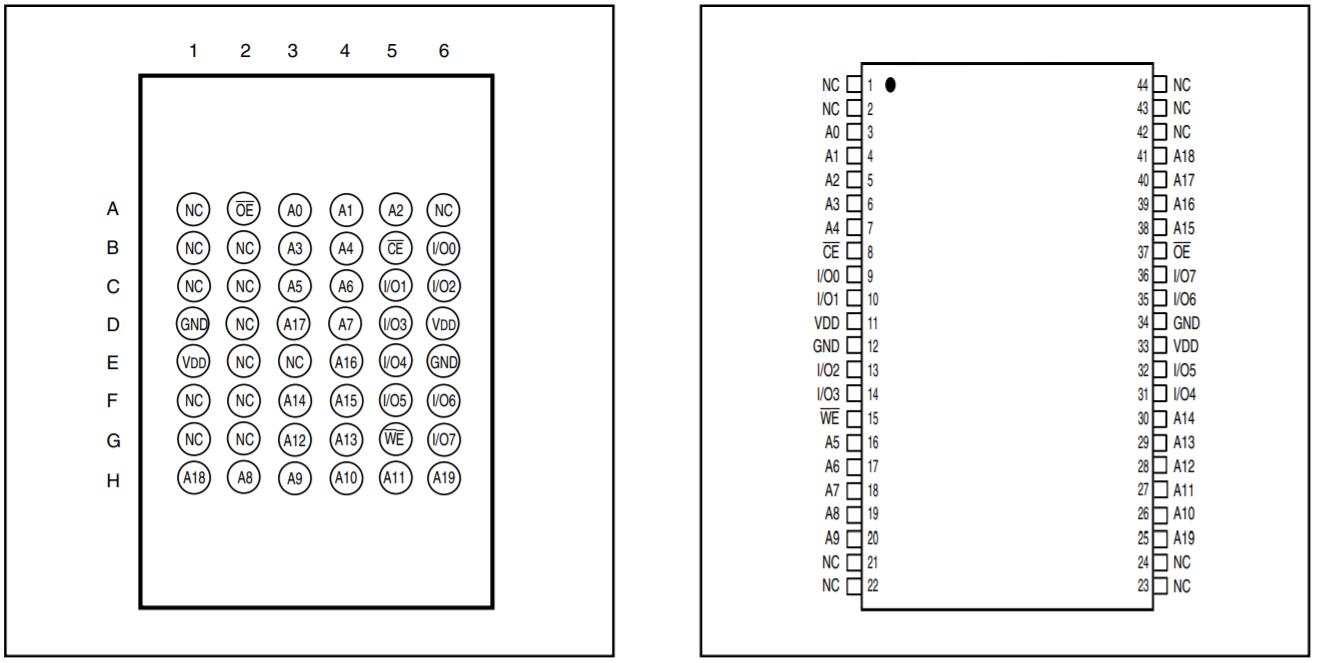 IS61WV10248EDBLL采用48球微型BGA(6mmx8mm)和44引脚TSOP(II型)封装。