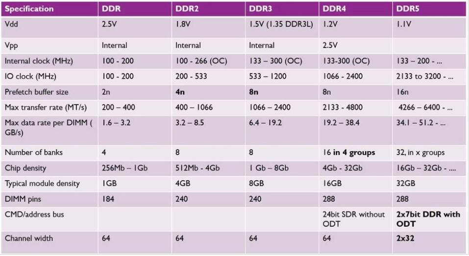 SDRAM的发展通常遵循与CPU发展相同的方向。如今微处理器致力于提高内核数,提高每个内核的性能以及提高电源效率,这对系统内存提出了要求。先进的内核需要足够的内存带宽,而此类内核的负载则需要高DRAM容量(和高带宽),但是在内存控制器的功能,信号完整性以及功耗方面存在局限性。为此,DDR5通过同时向多个方向发展DRAM来满足客户和服务器系统的需求。