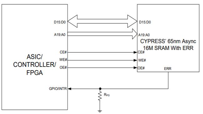 无需ERR引脚的赛普拉斯SRAM可以像传统SRAM一样在系统中连接。对于具有ERR选项的SRAM,系统设计人员需要在系统中正确连接ERR引脚。如果系统中未使用ERR引脚,则可以将其保持打开状态。本节介绍了在三种基本情况下使用SRAM连接ERR引脚的方法。