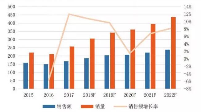 国内MCU微控制器市场未来五年复合增速达11.7%,至2020年市场空间达500亿元以上。据IC Insights预测,随着物联网的持续火热,MCU的出货量将持续上升,2018年全球MCU的出货量将增长18%达306亿颗,营收预期将增长11%,五年内全球MCU销售额年复合增速将达到7.2%,至2020年将突破200亿美元。2016年国内MCU市场已达360亿元,未来年复合增速将达到11.7%,至2020年市场将超过500亿元。
